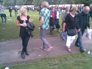 Åkte sen hem och käkade lite mat. Sen drog jag och chris på festivalen igen. Denna gången va det bra band som spelade. NERD va bäst, lil kim va en besviknelse! När vi käkat och lyssnat på alla band som vi ville höra åkte vi hem. Bytte om, hämtade alkoholen och tog med Jocce hem till chris. Festade lite, shotade och hade trevligt. In till krogen, Peacock va planerad. Vi kom dit oxå. Men jocce och chris försvann men jag träffade på killar jag kände igen. Full vid 4 tiden går jag till nivå ensam. Blir insläppt trotts min konstiga gång.. hehe.. Ramlar i trappen säkert två tre gånger.. kanske fyra.. Upptäckte blåmärken på mitt knä när jag vaknade i morse.. eller kanske i förmiddags. Vid halv 5 kände jag att nu ska jag nog ta en taxi hem, innan en taxi hinner ta någon annan hem.. Full som F-A-N. Men jag skötte mej. Desperata försök att få tag på Jocce och Chris, la jag till slut ner det hela. Konstaterade att det va helt omöjligt att få dem att svara i telefonen. Så jag hoppade in i taxin. Några fyllesamtal senare och 250 spänn fattigare, va jag hemma. Upptäckte oxå att Jocce och Chris hade tagit sej hem utan mej, för de låg här och sov när jag kom hem! Gissa om jag va arg! Somnade vid 5 tiden och sen vaknade jag upp 11.. med världens huvudvärk! Käkade frukost och sov igen sen till 17 tiden.